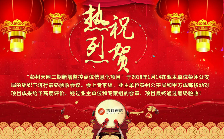 彭州天網(wǎng)二期新增監控點(diǎn)位信息化項目終驗通過(guò)